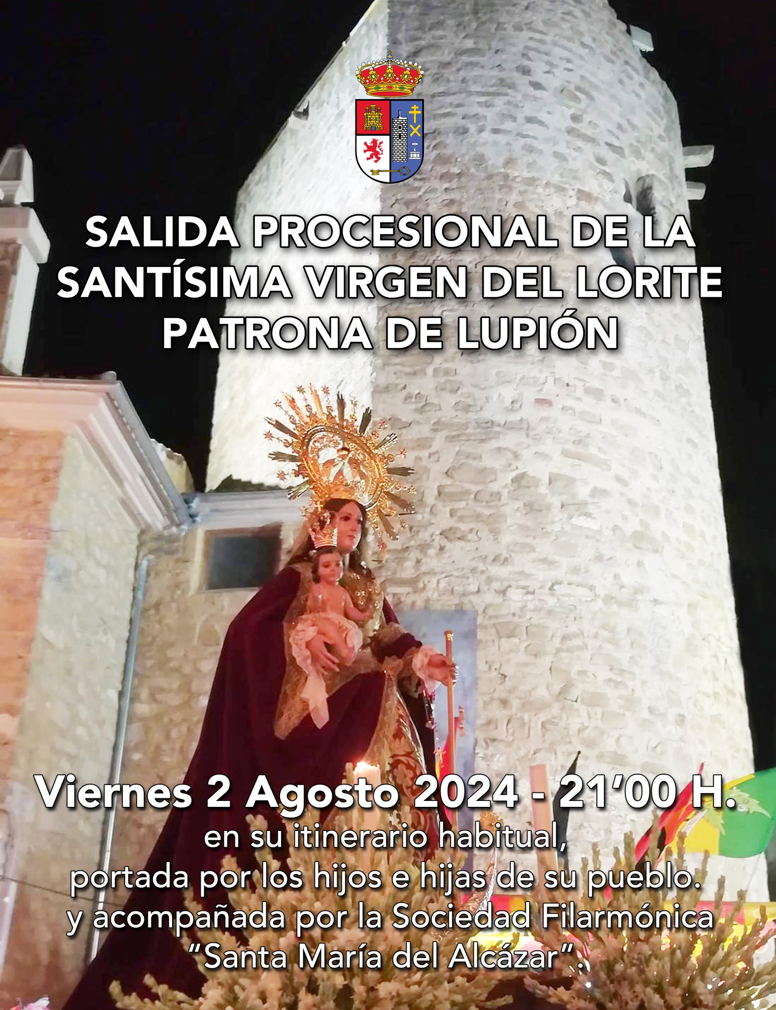 El viernes, 2 de agosto, a las 12 del mediodía, se celebrará en la iglesia parroquial de la Asunción la Santa Misa en honor a la Santísima Virgen del Lorite, oficiada por el párroco Juan Antonio Marín Linares. A las 9 de la noche, la imagen de la patrona saldrá desde su templo en procesión acompañada de cientos de fieles y vecinos por las calles del pueblo y de la música filarmónica. Terminada la procesión tendrá lugar en la iglesia parroquial la subida en andas del patrón, Santísimo Cristo de la Vera Cruz, que tendrá su día de celebración el sábado, 3 de agosto, con la Santa Misa en su honor y procesión en la noche acompañada de la banda de música por su recorrido habitual.